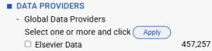 Derudover kan du i begge databaser benytte filtrene under ‘Data Providers’ til at se hvilke- og hvor mange dataleverandører data kommer fra.