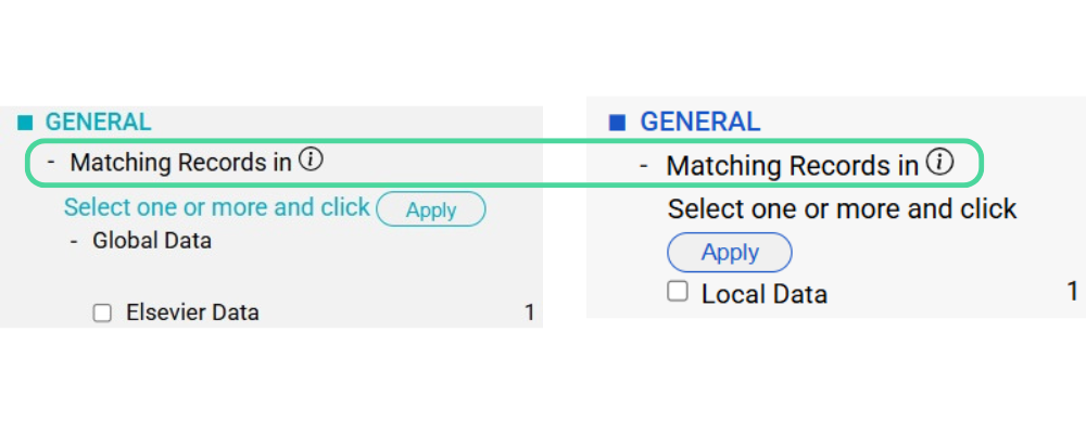 Ja. Ved hjælp af funktionen ‘Matching Records in’ kan du når du befinder dig i en af publikationsdatabaserne se hvilke publikationer, der er dækket af både den Lokale- og Globale Database.
